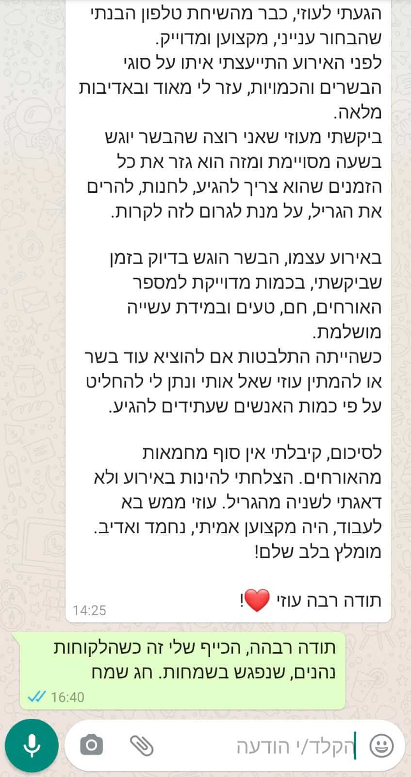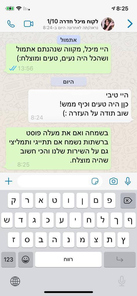 אנחנו עומדים בקשר פרטי וישיר עם השפים שבאתרנו כדי להבטיח חוויה קולינרית נהדרת ומשובחת.